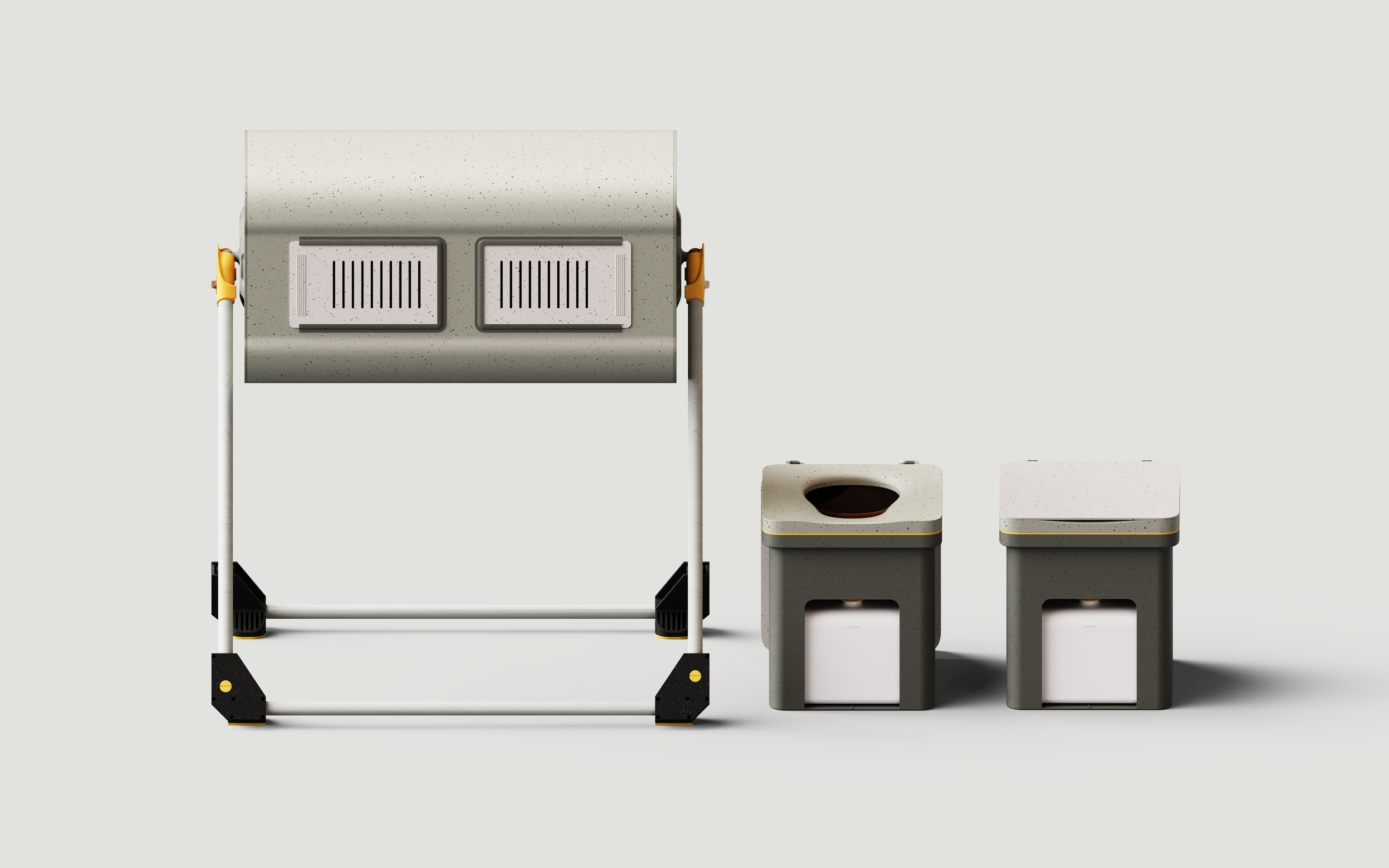 The design aims to eliminate the use of metals, relying entirely on eco-friendly materials. For waste management, it prioritizes fully biodegradable solutions, including the bags used for waste collection. Additionally, the product is designed to ensure a long service life while maintaining environmental sustainability.